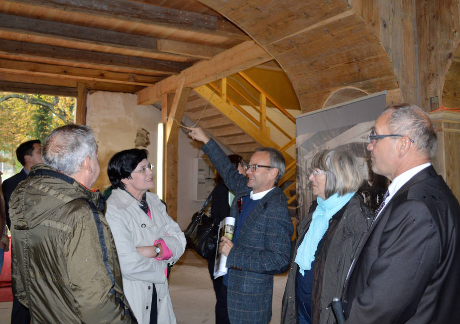Die Ministerpräsidentin hatte an sie viele Fragen hinsichtlich des Interesses junger Menschen an Geschichte und Zukunft unserer Region. Die drei jungen Leute hatten sogar das Vergnügen eines „Gruppenfotos mit Ministerpräsidentin“. Die Gespräche, gleichzeitig Information und Diskussion, fanden in den aktuellen großen Baustellen, dem Zeughaus und dem Hauptgebäude des Schlosses statt und endeten in einer angeregt debattierenden Runde im Kaisersaalgebäude. Es ging unter anderem um dringlich erforderliche Maßnahmen zum Bau des Torhauses als Eingangsportal und touristische Informationsstelle für die „Fürstlichen Erlebniswelten Schloss Schwarzburg“, deren Glanzpunkt die Zeughaussammlung sein wird, aber auch um die zukünftige Funktion des Hauptgebäudes als Begegnungs- und Informationsstätte zum Thema Verfassungsgeschichte und Demokratie. Die Ministerpräsidentin unterbreitete Vorschläge für die Kontaktaufnahme zu weiteren Gesprächen mit politischen und institutionellen Förderern sowie zum an der Finanzierung maßgeblich beteiligten Bund, die sie vermitteln will. Sie sicherte die weitere positive Beteiligung des Schlossprojektes durch das Land Thüringen zu. Der Bau des Torhauses und damit die Realisierung des Zeughausprojektes hängt jetzt von der Zustimmung des Kreistages, also unserer Abgeordneten ab.