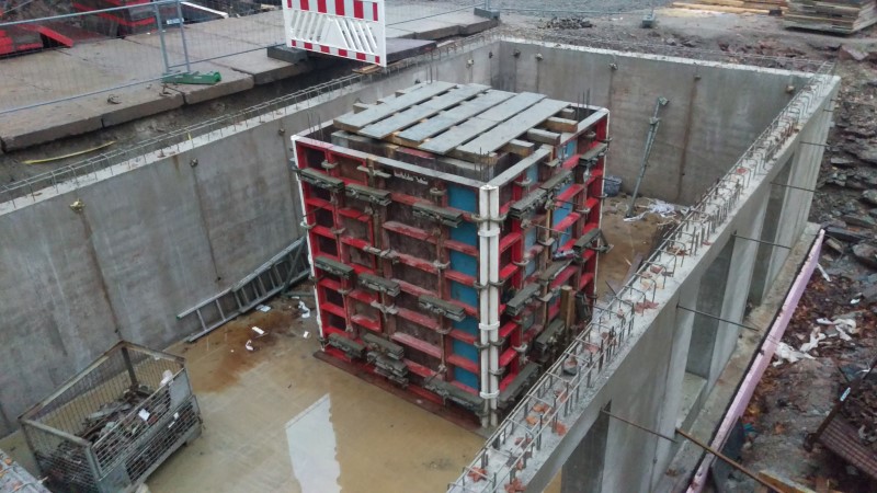 Mittig ist der Aufzugschacht zu erkennen, der zukünftig auch Menschen mit körperlichen Einschränkungen einen barrierefreien Zugang zur Zeughaussammlung ermöglichen wird.
