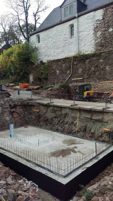 Das fertige Fundament des Torhausteils linksseitig der Schlosszufahrt