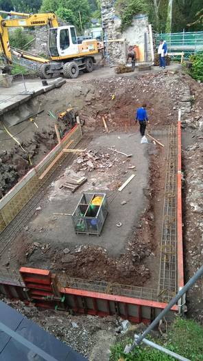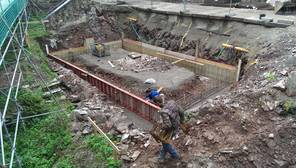 Einschalung des zukünftigen Fundamentes des Torhausteils linksseitig der Schlosszufahrt