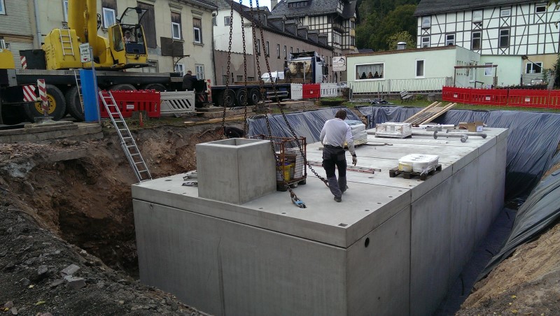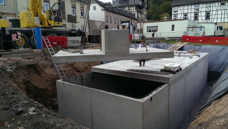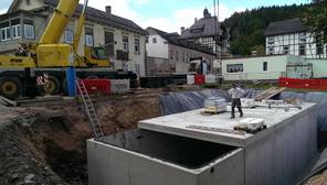 Einsetzen des Löschwasserbehälters am Beginn der Schlossterrasse